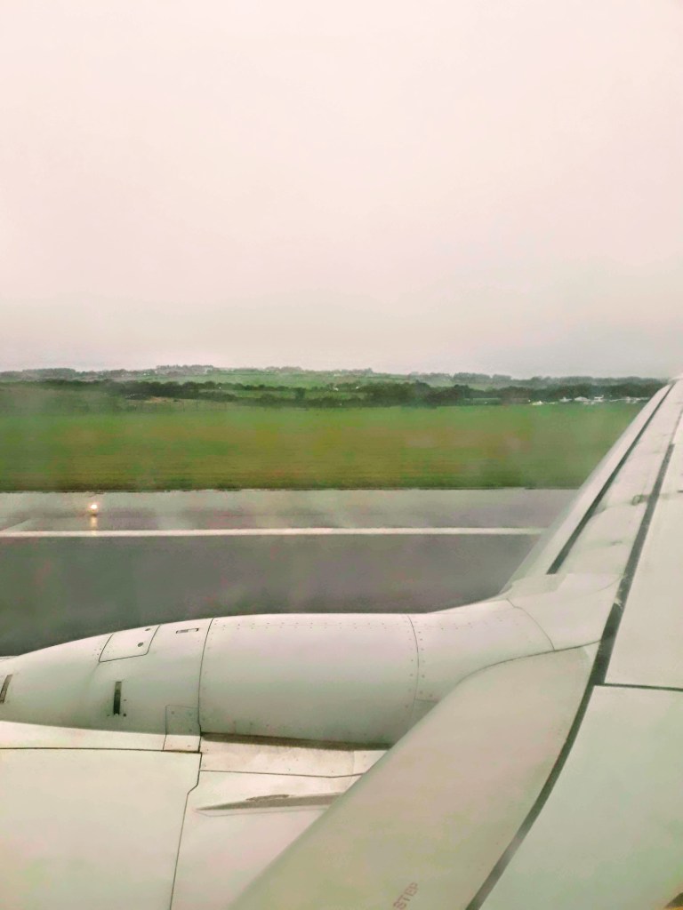 Son las 3 de la tarde, el avión acaba de aterrizar, gotitas de agua empiezan a deslizarse por la ventanilla del avión, de fondo, verdes campos envueltos en gris, «welcome to Ireland!»
